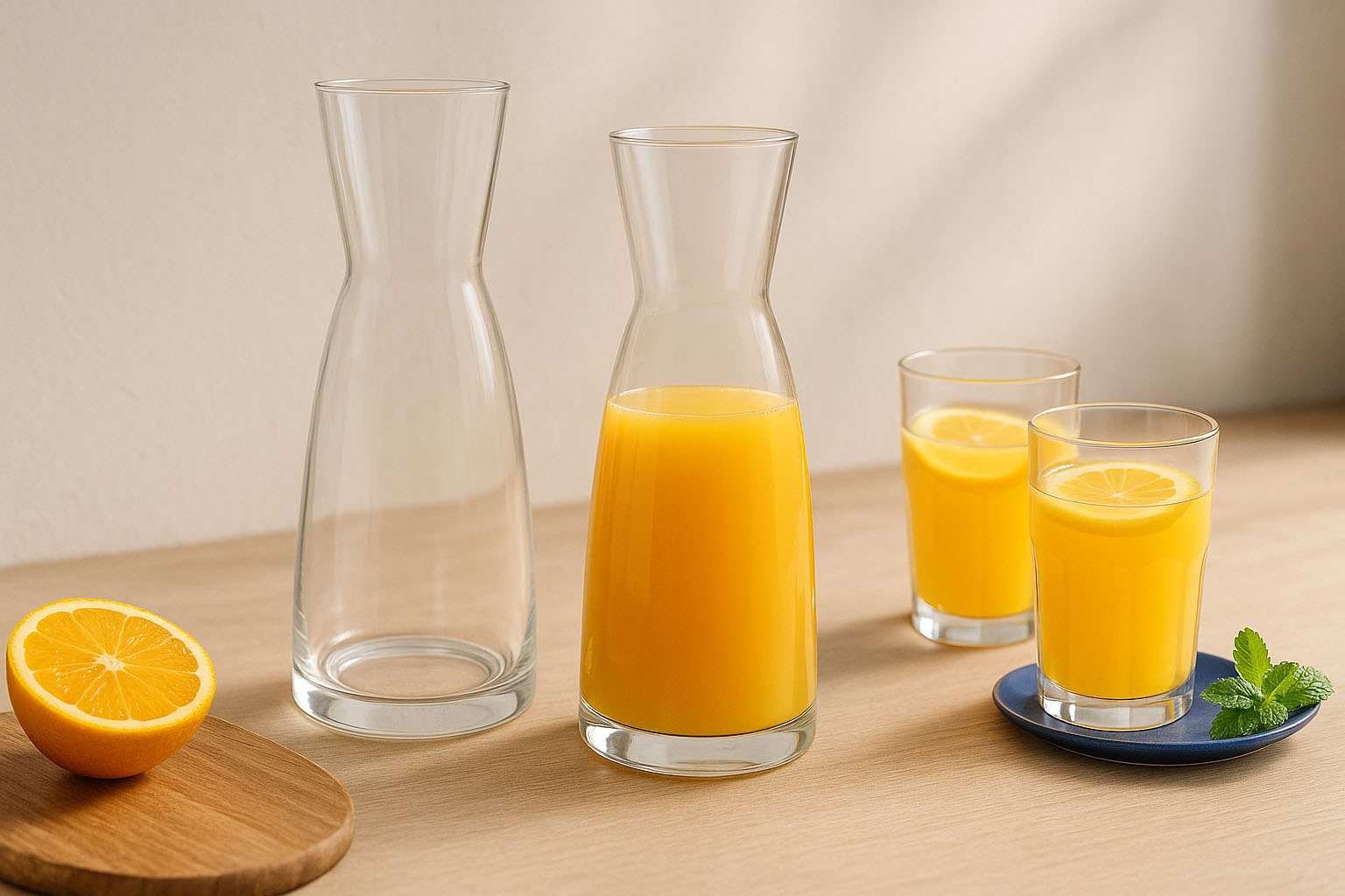 Ideal for chilled water, refreshing juices, or other beverages, the Aquaria carafe ensures a stylish presentation. Its ergonomic shape fits comfortably in the hand, while the narrow neck allows for controlled pouring. A true design highlight that elegantly combines enjoyment and aesthetics.