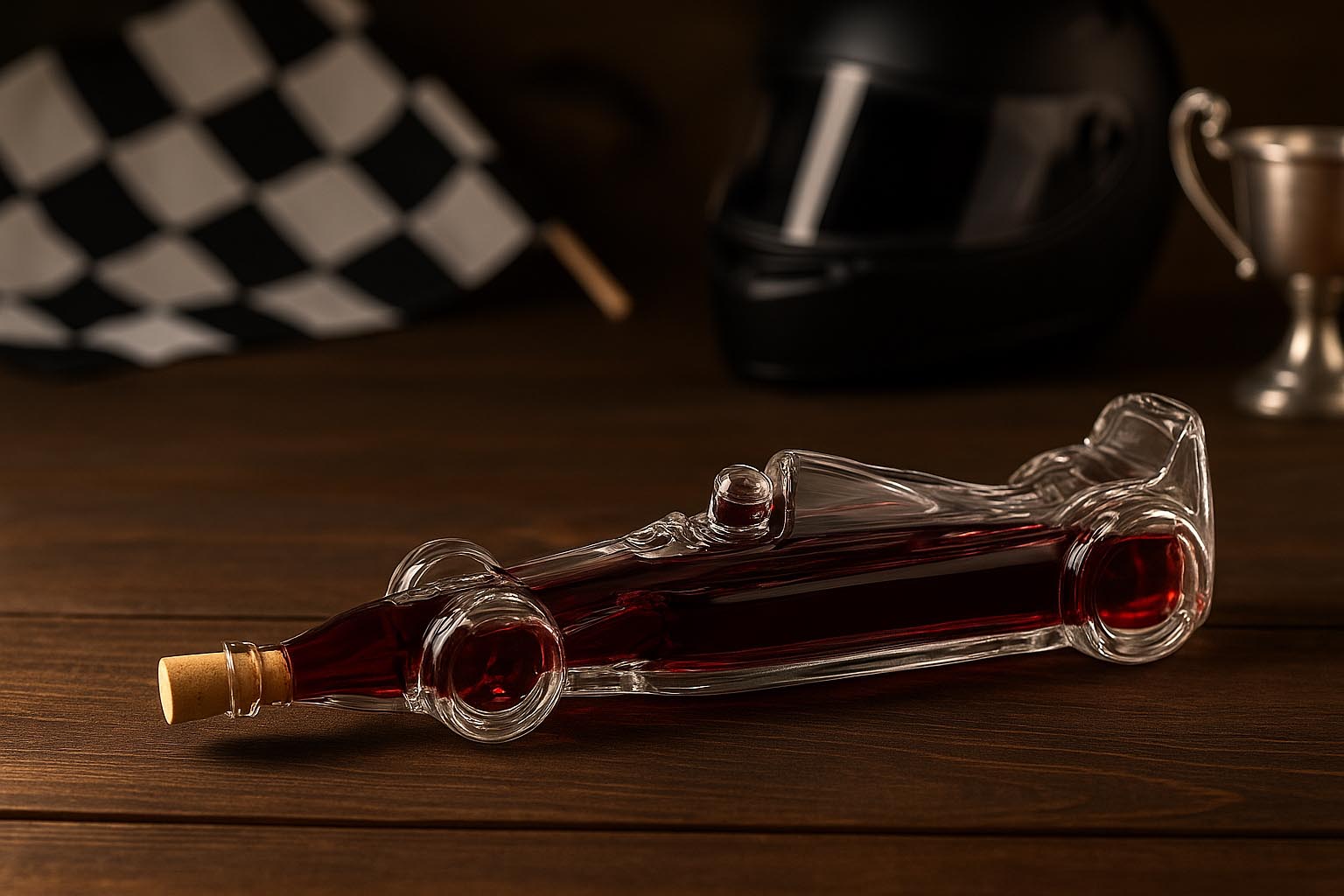The motif bottle "Racing Car" is an extraordinary highlight for motorsport fans and lovers of stylish bottlings. Its detailed shape perfectly captures the dynamics and elegance of a classic racing car, making it the ideal choice for special spirits, brandies, or liqueurs. Made from high-quality clear glass, it combines striking design with first-class craftsmanship. The cork neck ensures a stylish seal and gives the bottle an elegant touch. Whether as a gift for racing enthusiasts or as an exclusive collector's bottle – the "Racing Car" bottle showcases every drink with speed and style.