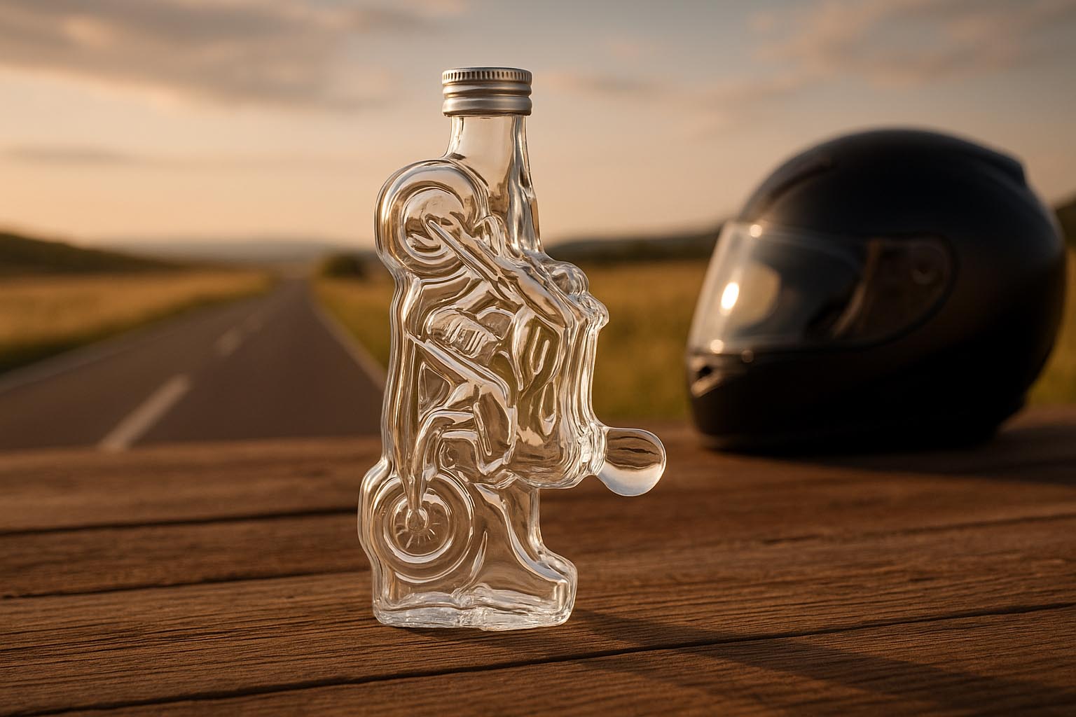 The motif bottle "Motorcycle" is an extraordinary eye-catcher that transforms the feeling of freedom and the fascination of motorcycling into a stylish glass bottle. Its detailed design makes it the perfect choice for anyone who loves speed, adventure, and individuality. Made from high-quality clear glass, it offers an elegant packaging for spirits, brandies, liqueurs, and other special delicacies. The practical PP-28 format neck allows for easy handling and ensures a secure seal. Whether as a gift for motorcycle enthusiasts or as an original presentation bottle – the "Motorcycle" bottle combines striking design with functional quality.