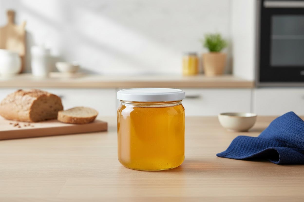 The "Rundglas" product series from Flaschenland includes high-quality 388 ml honey jars with a practical Twist Off (TO 82) opening, specially designed for the safe and hygienic storage of food. The main feature of this series is the combination of robust glass material and versatile usability. The Rundglas containers are characterised by their resistance to cold, heat, and microwaves, making them ideal for both fridge storage and heating in the microwave. Additionally, they are dishwasher safe, ensuring easy cleaning. With a capacity of 388 ml, they offer ample space for honey, jam, pesto, sausage, or pickled items.