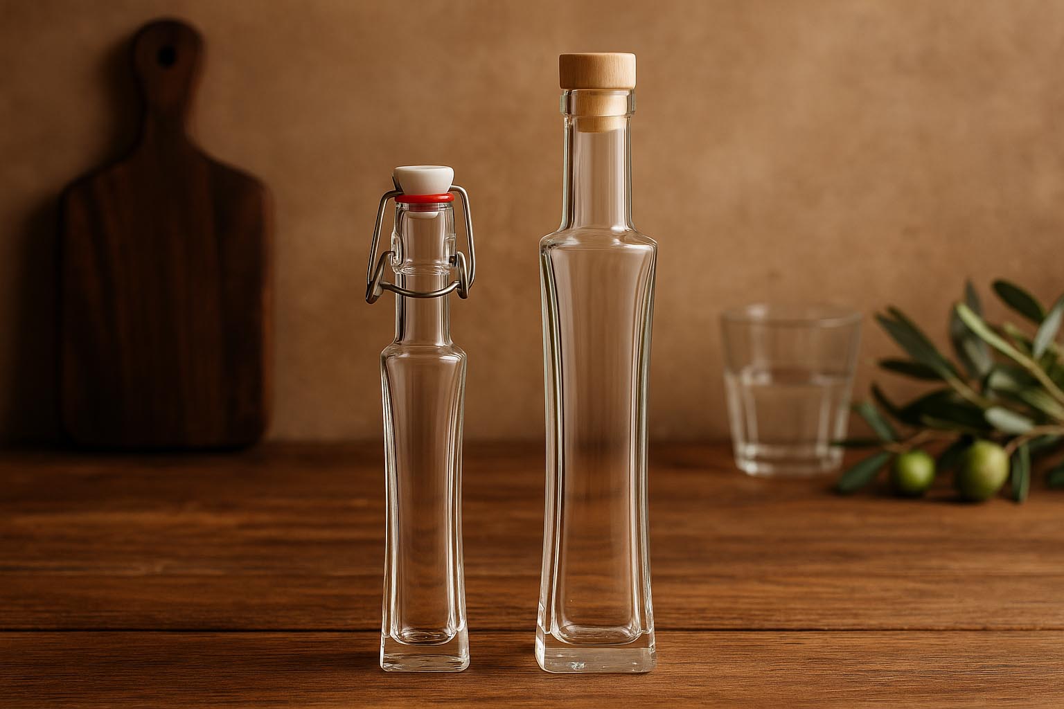The "Koko" bottle is available with either a swing-top or cork closure, allowing it to adapt flexibly to different needs. Suitable closures are available in our range and guarantee secure and stylish storage. Whether for fine spirits, aromatic brandies, or special liqueurs – the "Koko" series allows drinks to be presented in style.