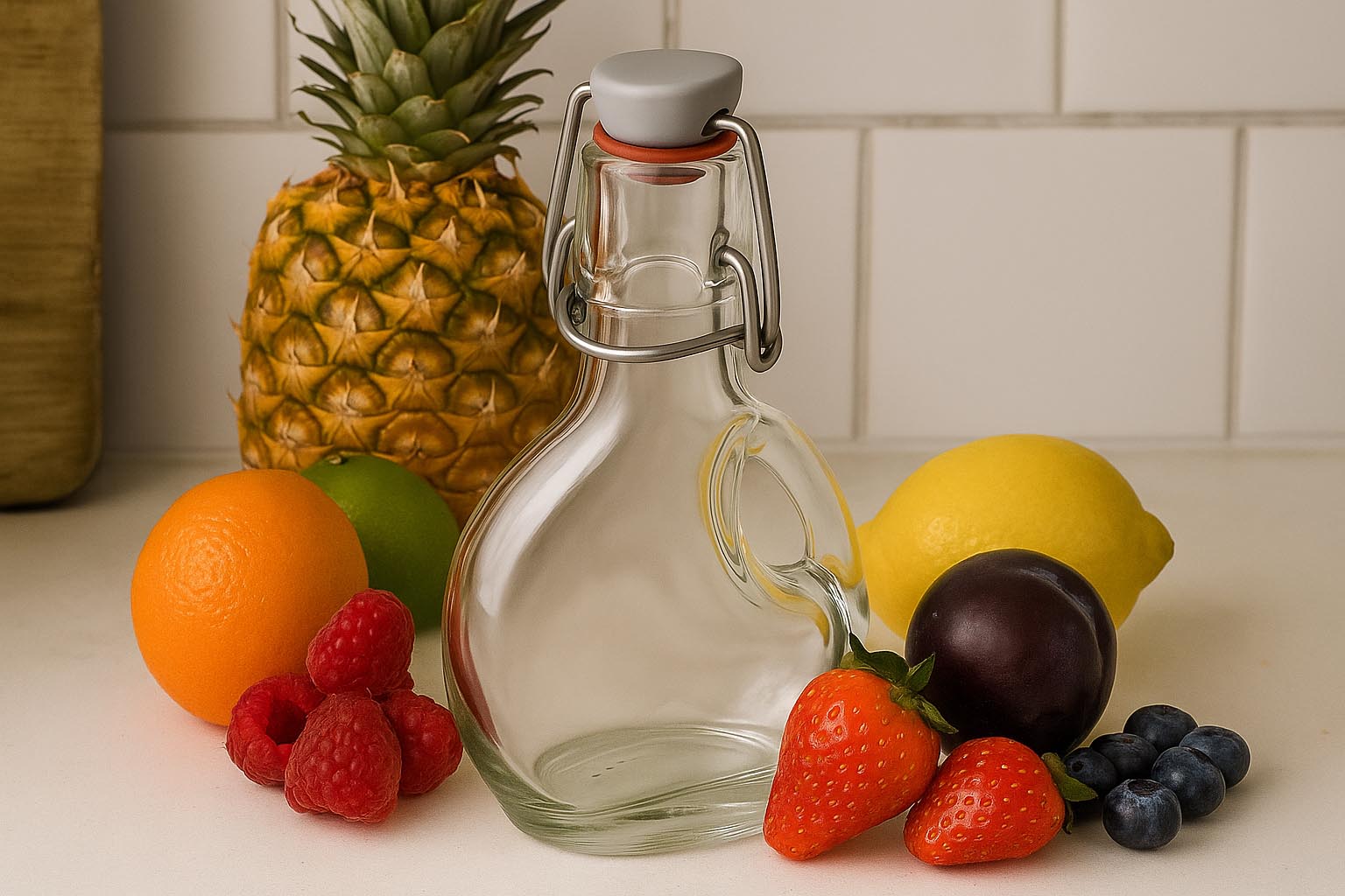 The “Lukas” series combines functional design with a decorative look. The bulbous glass bottle with an oval base captivates with its gentle curves and a stylish grip recess that allows for comfortable handling. Made from high-quality clear glass, it offers an elegant presentation for a variety of contents. The swing-top closure ensures a secure seal and gives the bottle a nostalgic charm. Whether for fine spirits or special creations – “Lukas” is the perfect choice for stylish bottling.