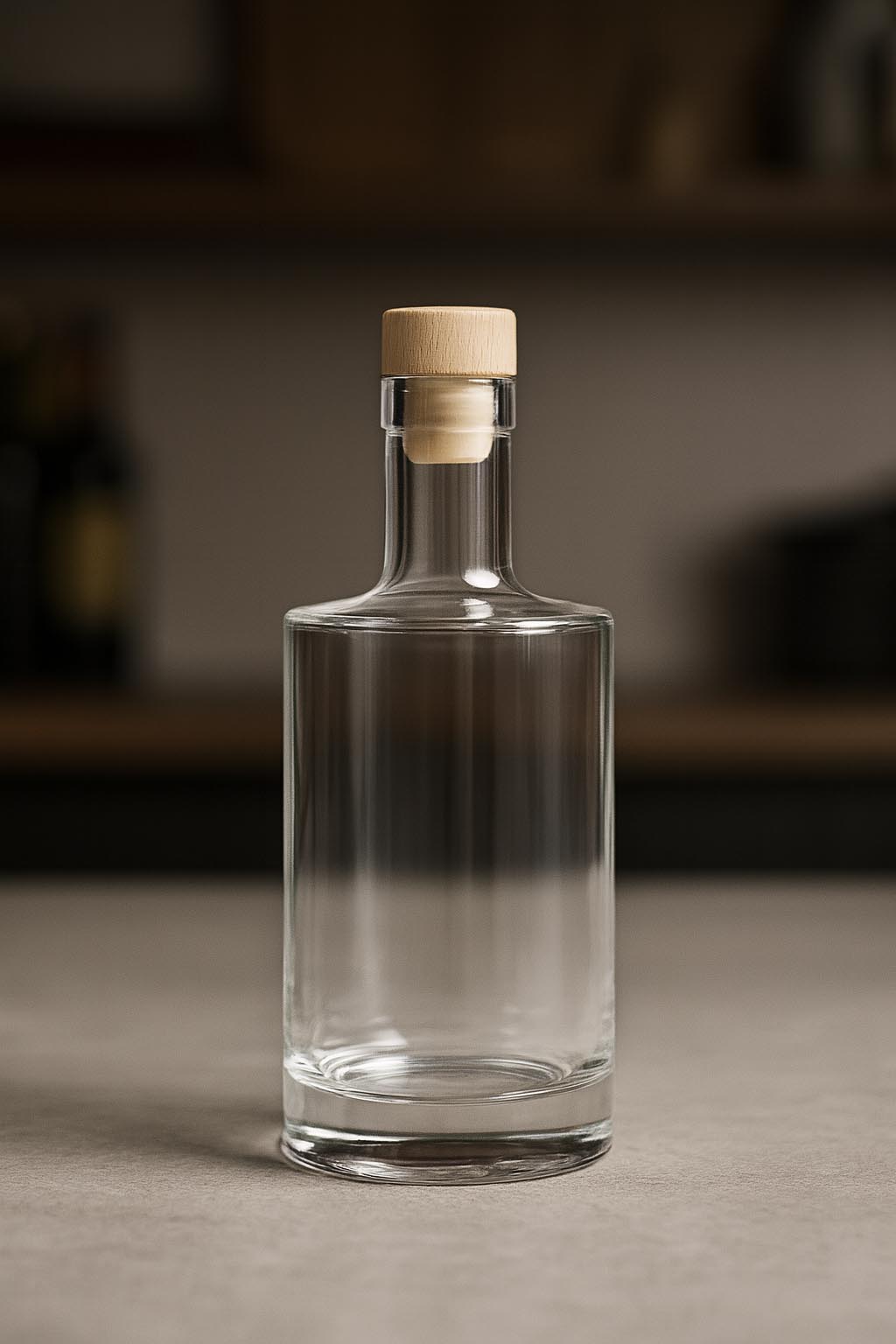 The "Homeland" series stands for distinctive elegance and high-quality craftsmanship. This exclusive cylinder bottle made of clear glass impresses with its glass base over 2 cm thick, which not only provides exceptional stability but also gives an impressive optical depth. The robust yet stylish shape makes "Homeland" the perfect choice for fine spirits, characterful liqueurs, and other premium bottlings. Thanks to the flexible neck options – available with either a cork or GPI 28 closure – the bottle adapts to individual requirements. "Homeland" combines timeless design with a strong presence, showcasing every product in style.