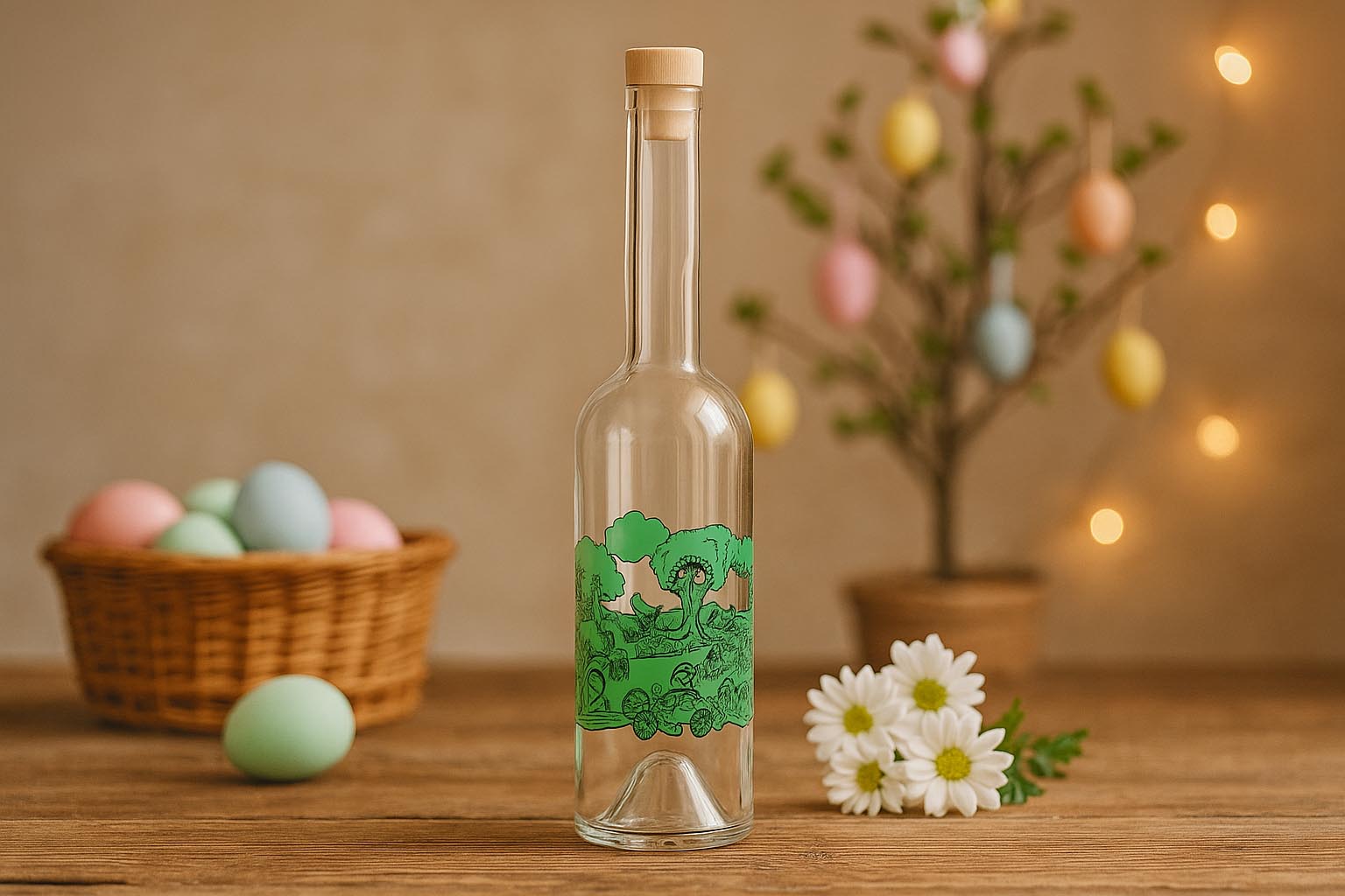 The "Opera" series combines timeless elegance with personalised design, offering a stylish packaging solution for fine liqueurs, exquisite spirits, and quality wines. As a classic straight-neck bottle, it impresses with its long neck, gently sloping shoulders, and a cylindrical body that creates a harmonious and balanced shape. With a capacity ranging from 200 to 500 ml and a narrow band opening that can be securely sealed with cork stoppers, "Opera" merges aesthetics with functionality. Exclusive motif prints – from birth and wedding, to festive occasions such as New Year and Christmas, and themes like fruits, regions, zodiac signs, and hobbies – make each bottle a unique eye-catcher. "Opera" is the perfect choice for discerning brands seeking to combine enjoyment with an individual and high-quality presentation.