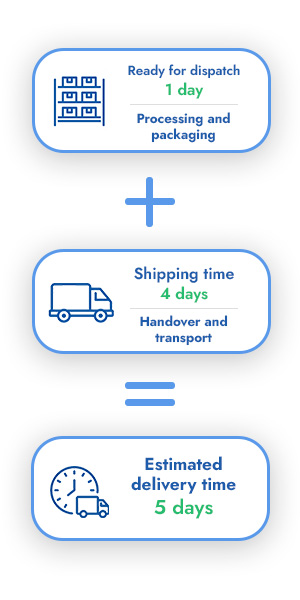 *Applies to orders placed by 12:00 noon (Mon-Thu) with an instant payment method. In metropolitan areas, the delivery time is 1 working day. In other regions, delivery may take up to 2 additional working days.