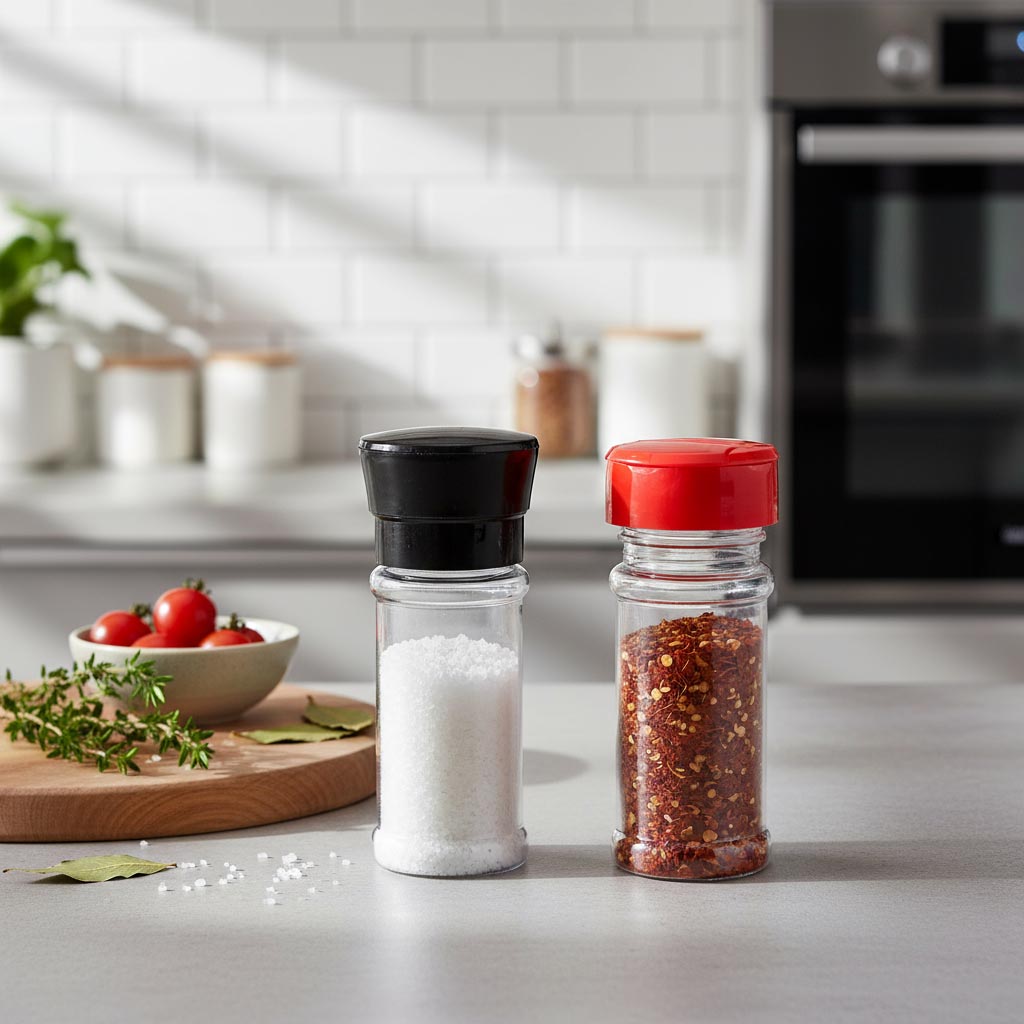 The product series “Spice Jar Lid Mill” from Flaschenland is distinguished by its high-quality workmanship in elegant black PP plastic and is specially designed for spice jars with a 38/400 neck finish. These lids combine functionality with durability and are ideal for use in the spice and food industry. Outstanding features of the product family include cold-resistant and UV-resistant material quality, ensuring long-lasting durability and protection against environmental influences. Additionally, the lids are dishwasher-safe, allowing for easy and hygienic cleaning. The robust PP plastic ensures a secure seal and optimal protection of the spices from moisture and foreign odours.